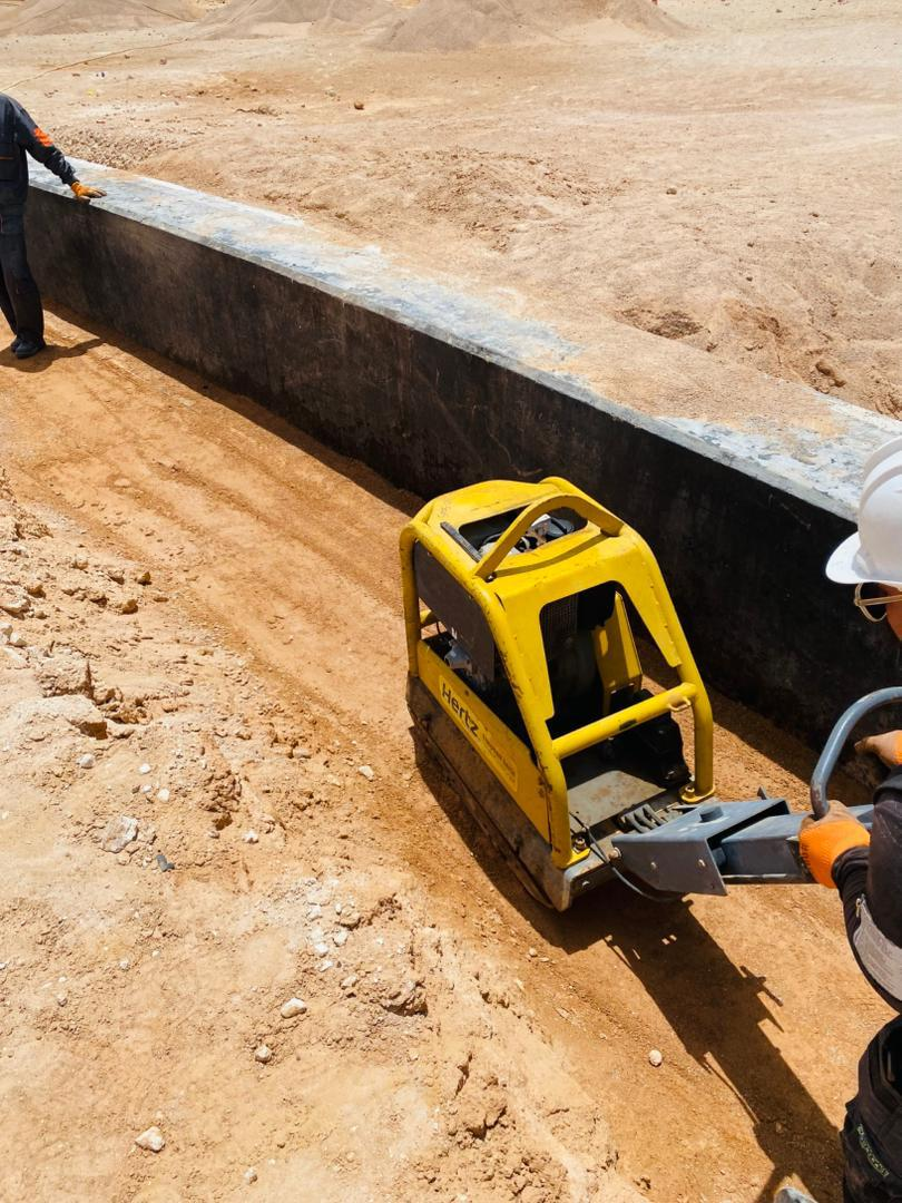Zajel Company deploys soil compactor rollers as part of its earthwork and tank foundation preparation operations. These machines play a critical role in achieving the required soil density and compaction standards during internal and external backfilling, especially for crude oil tank bases and surrounding containment berms
